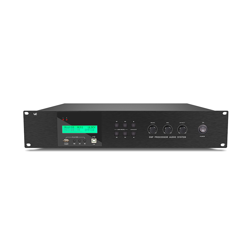 采用专业4K电影级音频处理技术,更灵活准确音频传送,更逼真音频体验以及采用最新DSP音频处理芯片,还原最真实的声音;主机集合了蓝牙、U盘播放、话筒输入/输出口、立体声输入/输出口、内置8x150W功率输出,支持RS485第三方对接通信口。DSP数字音频处理软件具备输入信号的状态指示,集合了高低通滤波器、每路话筒输入电平/均衡、音乐的输入电平/均衡、噪声门/效果/延时/混响/压限/音调/反馈抑制等参数调整功能,可选配有线4寸触摸控制面板方便实现会议模式、演唱模式、电影模式的一键切换,同时实现话筒音量最大不啸叫、实现总的话筒信号源、音乐信号源、混响效果的音量大小统一管理。