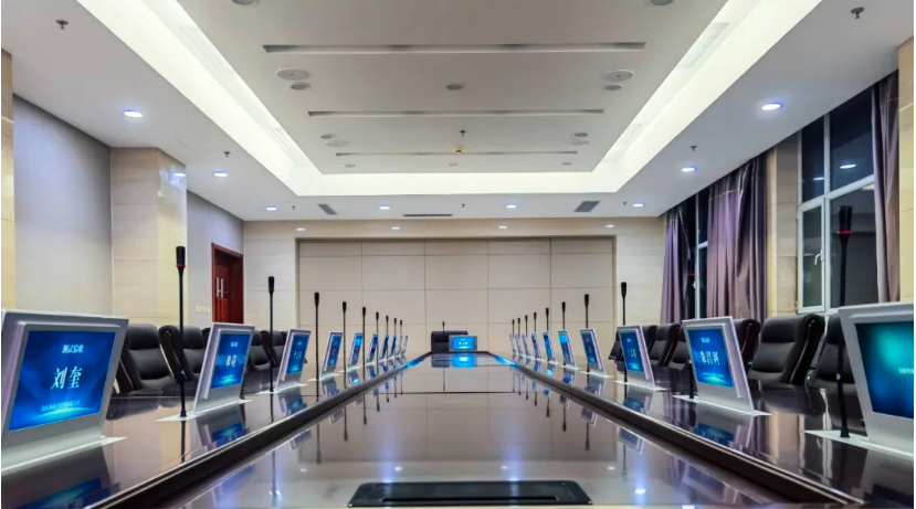 本次案例是为山东某公司打造的的无纸化会议系统。这间100㎡左右的会议室,用于日常工作、远程会议等。 无纸化智能交互系统做到声音效果不啸叫,会前、会中、会后无纸化便捷化,实现文档、图片、视频能够及时批注、
