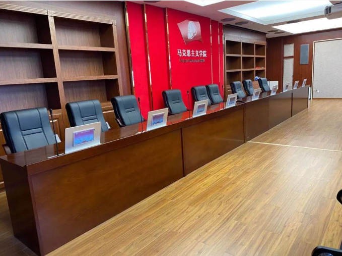 本次项目是优麦为广西某师范大学打造的一间18:4/3D沉浸式音效的无纸化会议室,会议室平时用于政