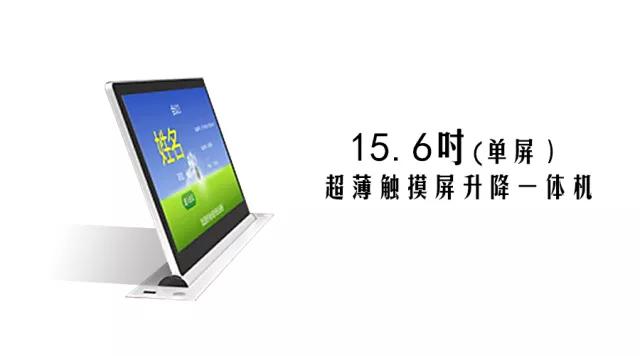 15.6吋高清显示IPS高清真彩屏,钢化玻璃;降器面板推荐颜色:航空铝银,经典亚光黑;升降器支持自动仰角12度,保证显示器人体工程学最佳观看视角与触控角度,无缝圆轴一体连接。保证各个角度的美观,完美视角。