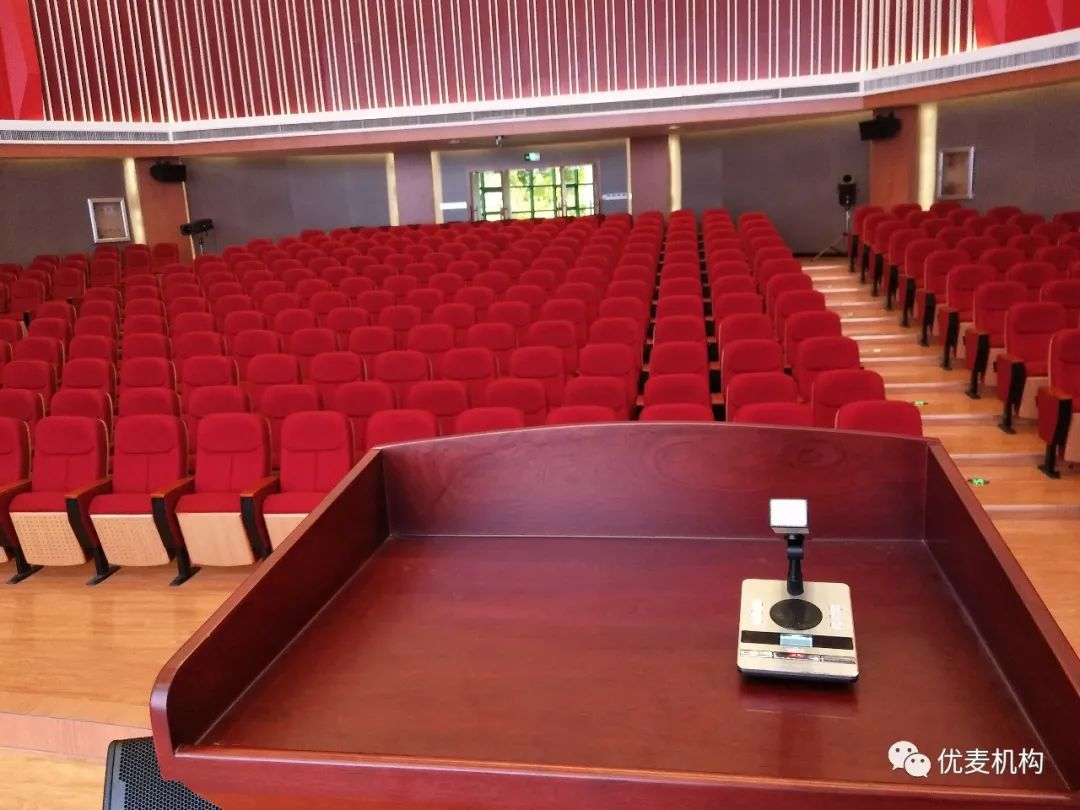 这个能容纳300余人的大型多功能厅,平时用于学术报告、讲座、工作会议等,人数多且工作紧张,高质量的会议显得十分重要。优麦的全 数字化标准型会议系统主机具备4种会议模式:先进先出、排队等候、自由发言、申请发言。开起会来有条不紊,工作效率高。