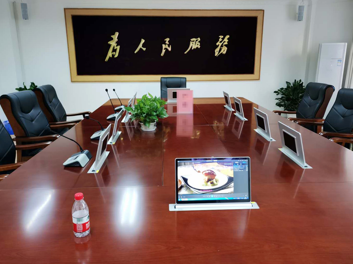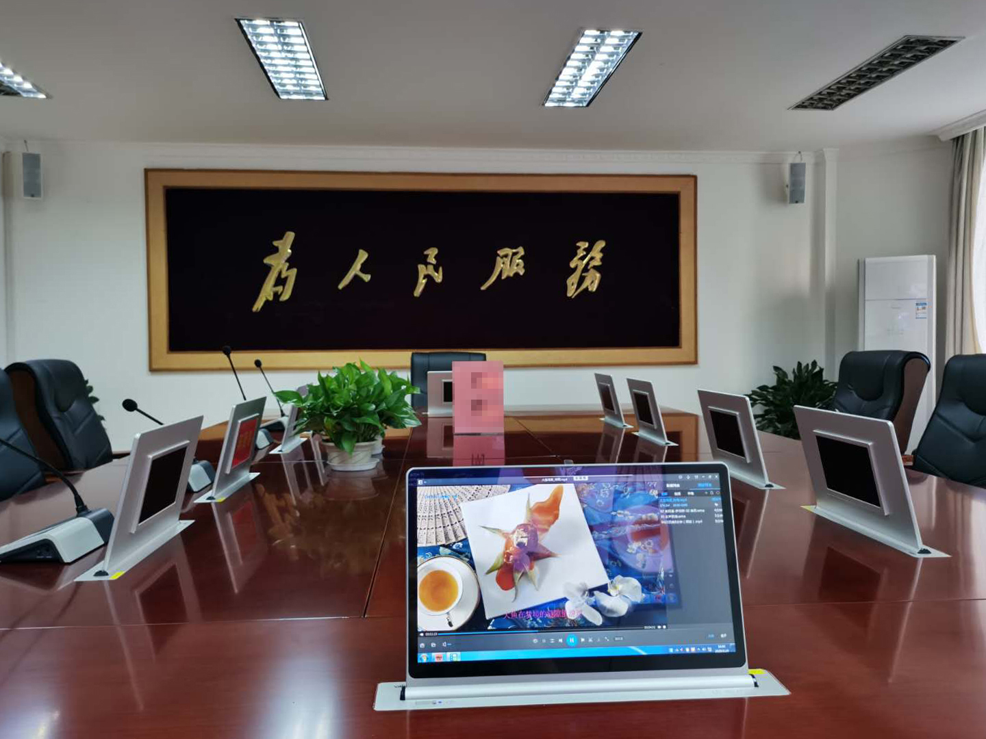 案例主要产品为超薄触摸屏双屏显示升降一体机,该产品已然成为新时代无纸化会议和视频会议室的主流产品,配合无纸化软件,可以实现众多功能,是人与人之间信息化交互的重要工具。再通过7吋有线触摸屏,会议、远程、培训等多个场景模式一键切换,最终完成整套时尚高级的会议功能新体验,减少了传统话筒布线的复杂性,一键操作,实现高端智能化,更有效的控制会场的秩序。