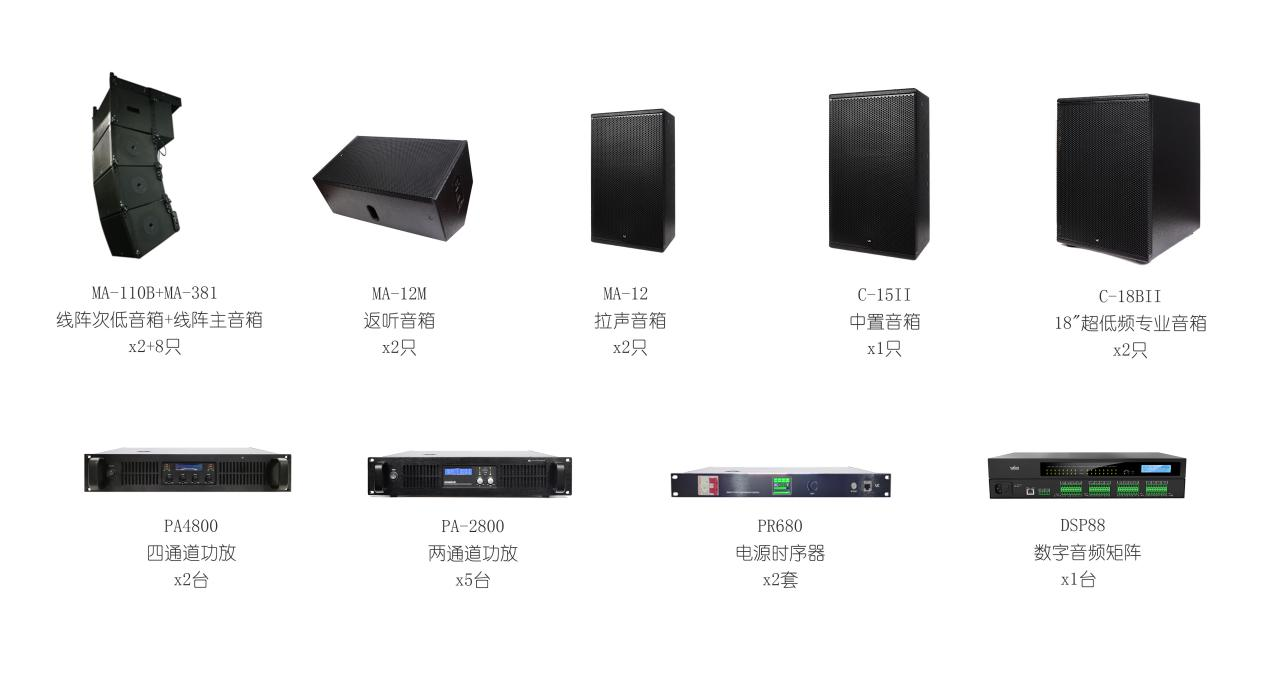 除此之外,音箱使用了8只左/右声道线阵主音箱,2只线阵次低音箱,1只中置音箱,2只超低频专业音箱,2只返听音箱,2只拉声音箱。音箱时尚大气,独特的材质适合会议与演唱的双重特性,并具备THK认证标准,HIFI高保真的音质。音箱各频段声音成份都有着恰当比例的量感,听觉感受与观赏现场演出时非常接近,自然真实而久听不厌,悦耳动听的音乐,如同弥漫在声音的海洋中。