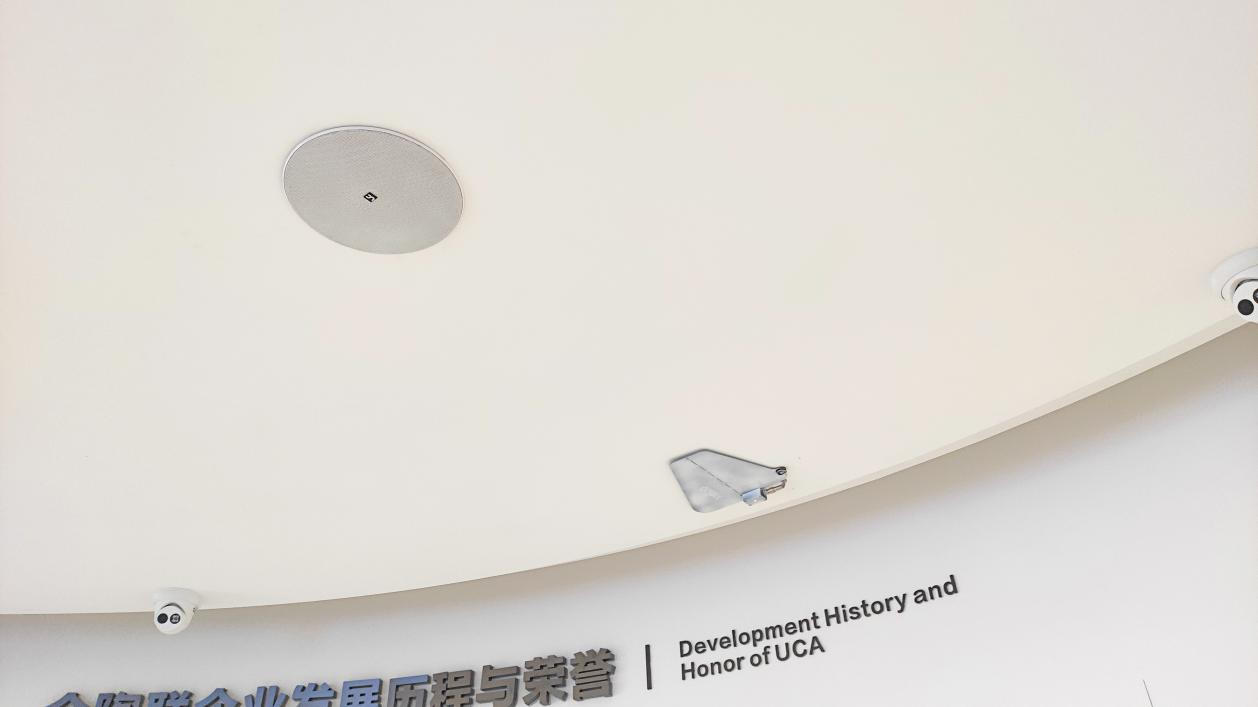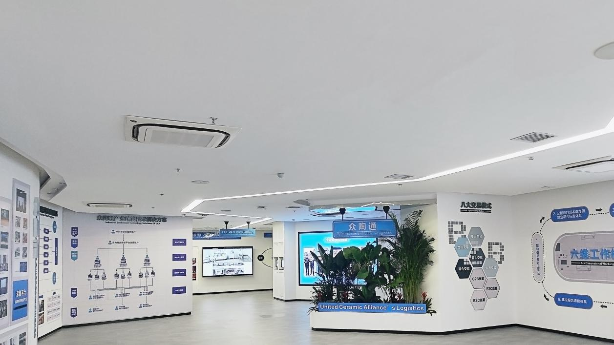 众陶联展厅是一个集公司历史介绍演示、业务演示、技术演示等4个板块区域为一体,合计400多㎡的现代化展示厅。展厅面积大、区域多,综合考虑后,我们在展厅安装了相对独立的音响扩声系统,对音频系统进行了多分区域的控制管理,确保无线话筒无论在哪个区域都不会掉频和断频。