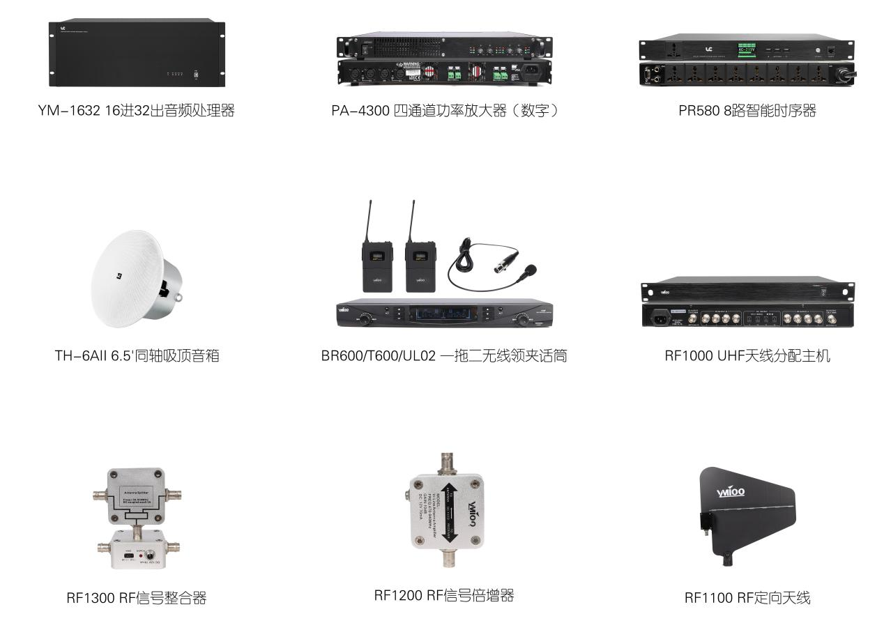 YM-1632 16进32出音频处理器有16路卡侬输入,32路卡侬输出,采用32/64bit浮点高速运算DSP, 极高动态范围和优良音质;输入、输出使用24bit, 192kHz采样高性能ARM系统管理和DSP信号处理的双核架构设计;所有输出通道均有压限器,其启动时间、释放时间、起控电平和压缩比等参数均可在大范围内调整。处理器有多达20个用户自定义存档以及最近调整存档的功能,参数保存模式有自动和手动保存;还有USB控制接口,人性化的PC控制软件。