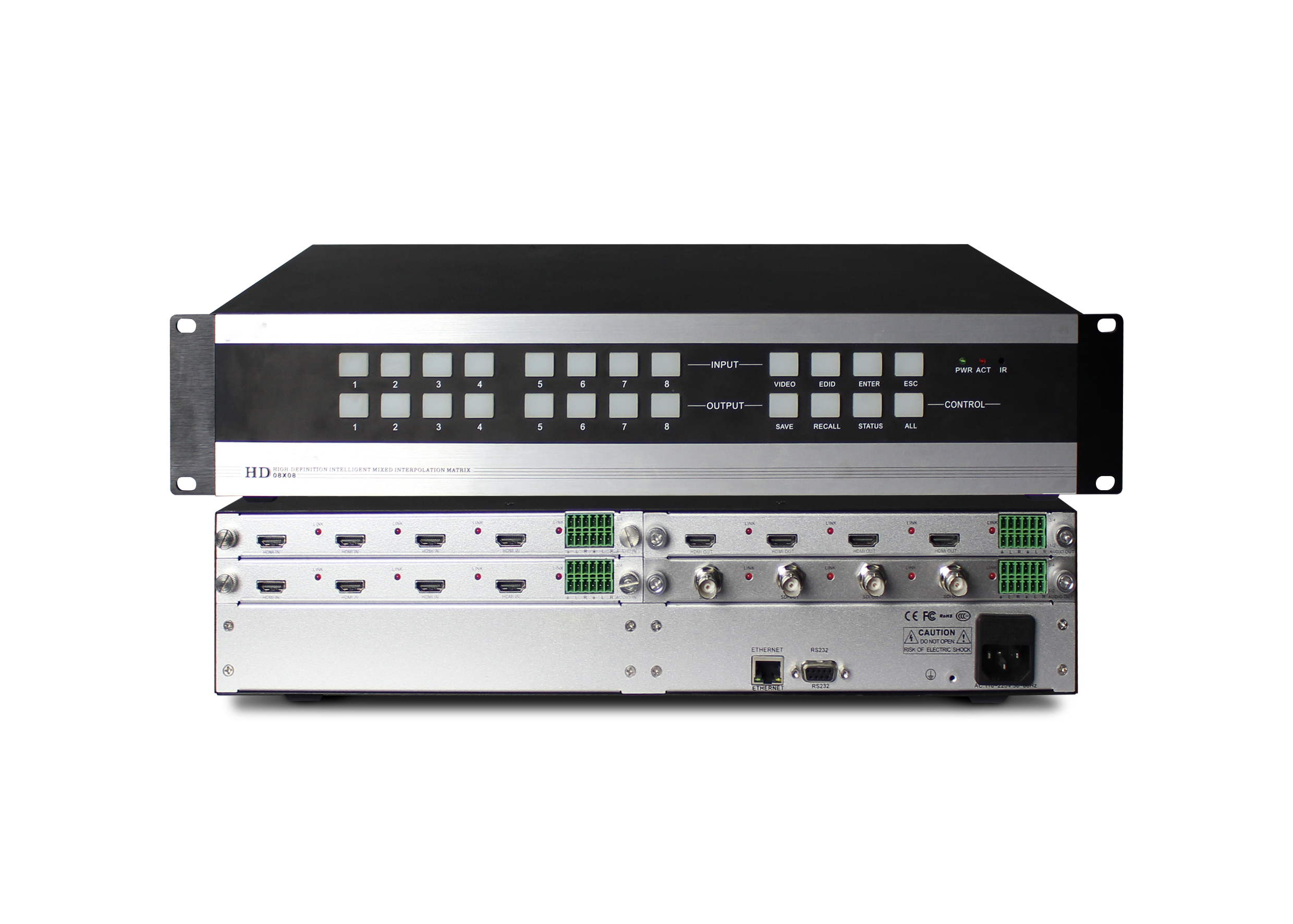 (3)音频处理能力:DVI、VGA、SDI、色差、Video输入支持模拟音频输入混合;HDMI输入支持模拟音频/数字音频选择混合;混合后的信号经切换后,支持内嵌音频输出(HDMI)、或者视频和音频分离输出(DVI、VGA、SDI等)。