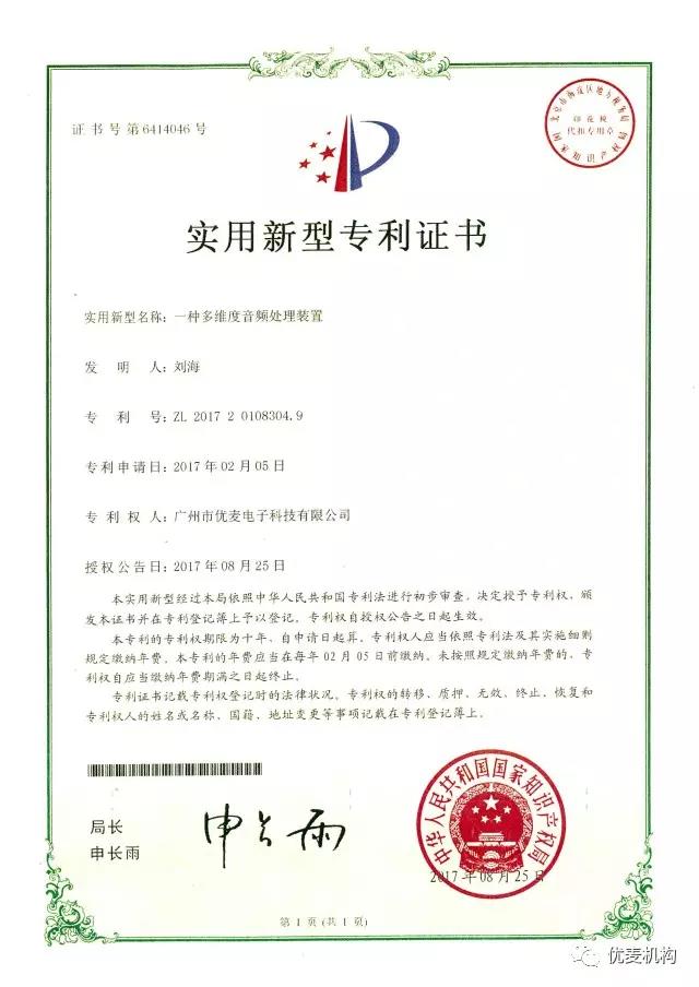 此项实用专利证书的获得,是对优麦品牌不断创新及优化的肯定。这项专利成果为公司今后的发展积蓄了前进的动力,进一步提升了公司产品科技沉淀,提高企业核心竞争力,希望优麦机构能为广大用户提供更好的产品及服务。欢迎新老客户,洽谈合作,携手共进!