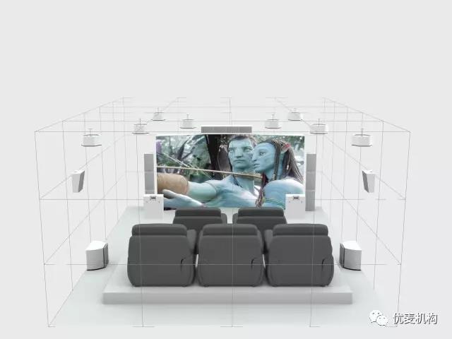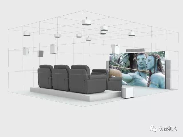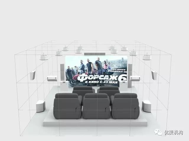 优麦机构倾全力,精心打造了一系列全新的不同层次的私家影院,无论是在传统的5.1和7.1解码器基础上派生出的音效再处理系统,还是应用全景声或多维度传输的电影录制技术及其还音处理技术的理念而创建的多通道影院系统(下面展示的是系列全景声影系统结构图),都运用了别具一格的UC·3D全景声影院多维度音频处理装置。